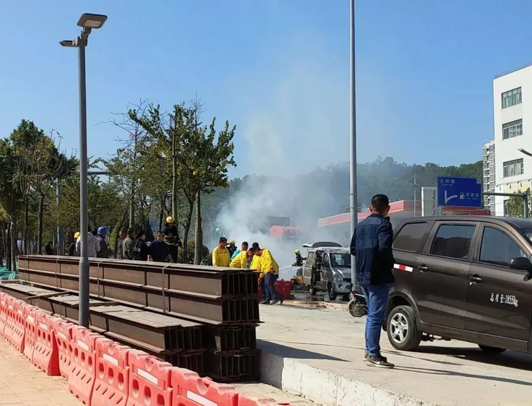 事件經(jīng)過(guò):2019年12月4日上午11時(shí)許,龍華區(qū)觀湖街道環(huán)觀南路與白鴿湖路交界路口附近一輛小面包車后排貨物起火,由于所載貨物是可燃物品,瞬間產(chǎn)生濃煙和大火。新田加油站站長(zhǎng)高滬以及安全主管許鵬,看到了正在起火的面包車,兩人馬上從加油站里拿來(lái)了滅火器,加入救火工作,因撲救及時(shí),火災(zāi)迅速得到了控制,現(xiàn)場(chǎng)無(wú)人員傷亡。