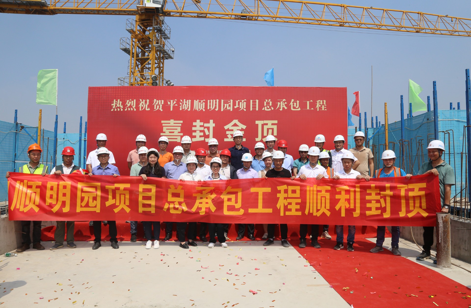 5月30日上午,順明園項(xiàng)目隆重舉行了1棟主體結(jié)構(gòu)封頂儀式。隨著最后一斗水泥由塔吊車?yán)鹕?,送至屋面樓頂,現(xiàn)場(chǎng)禮炮齊鳴,1棟主體結(jié)構(gòu)正式封頂大吉。集團(tuán)副董事長(zhǎng)、總包單位負(fù)責(zé)人、監(jiān)理單位負(fù)責(zé)人以及順明園項(xiàng)目全體人員等參加了封頂儀式,共同見證了這一美好時(shí)刻。